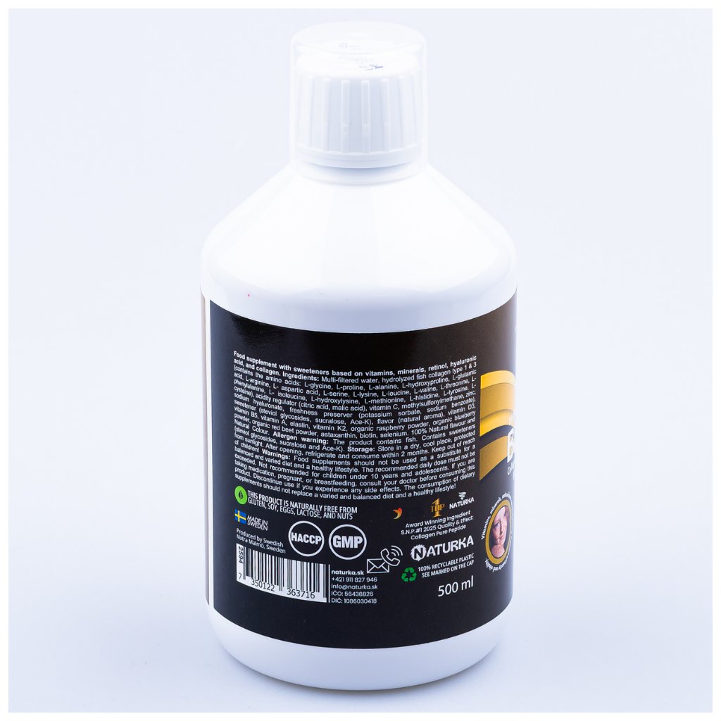 🐟 500ml - obsahuje vysoko koncentrovaný morský kolagén. Až 15 000 mg kolagénu v jednej dávke!
